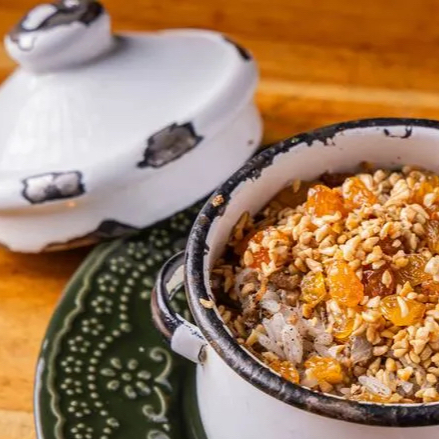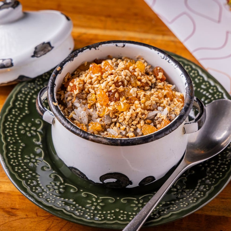 Uma deliciosa seleção de ingredientes finamente selecionados para despertar as suas papilas gustativas. Nosso arroz califa é cuidadosamente preparado, acompanhado de uma carne moída de qualidade superior, combinada com um saboroso peito de frango desfiado para um sabor inigualável. Para finalizar, este prato é coberto com uvas-passas suculentas que oferecem um toque adocicado e castanhas de caju c