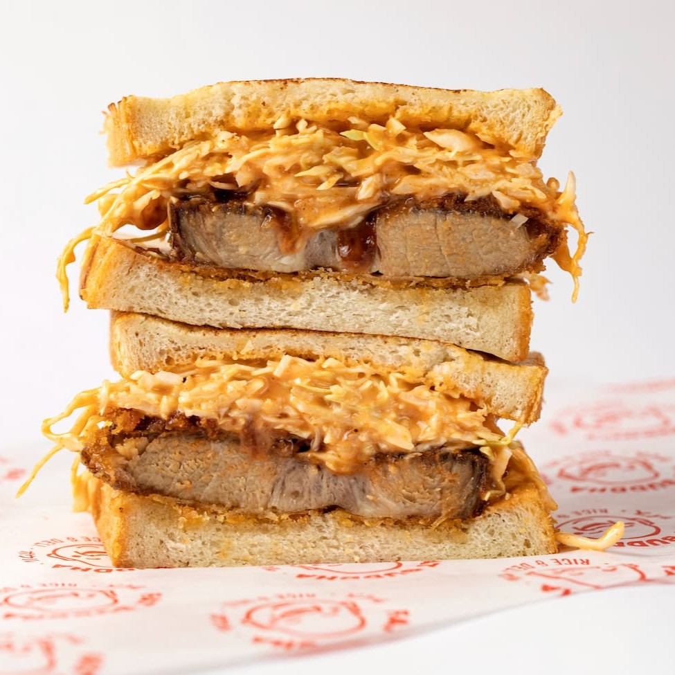 Tradicional sanduiche de frango (150g), com molho tonkatsu, no pão Hokkaido (fermentação natural), saladinha de repolho com maionese de curry e um toque de cebola finamente picada.