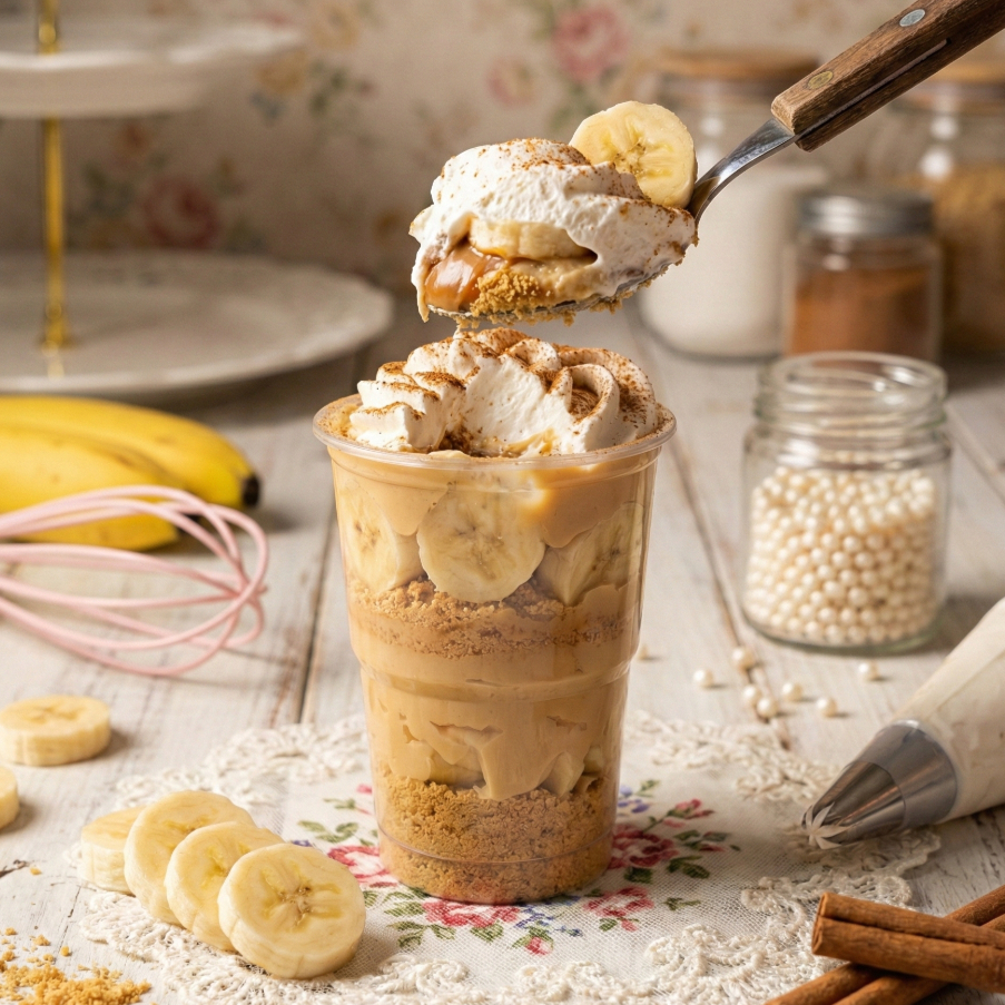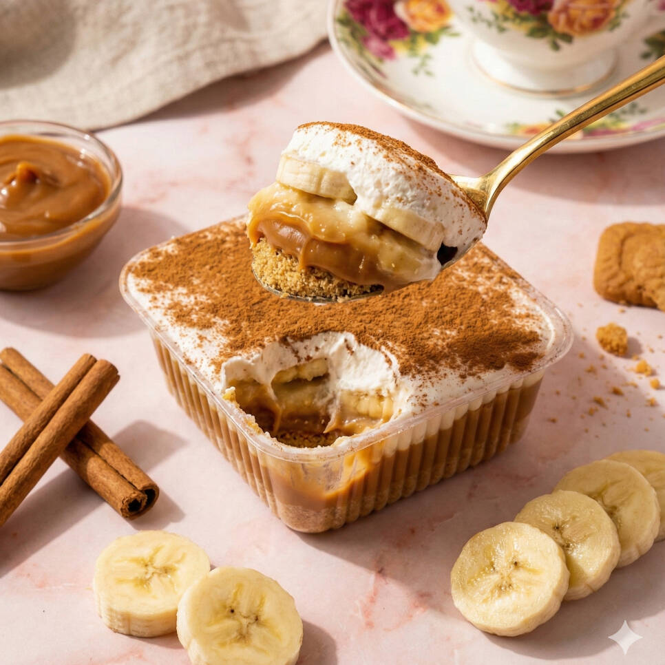 Uma sobremesa que abraça o coração e derrete na boca. Camada generosa de biscoito amanteigado crocante, coberta com nosso doce de leite artesanal bem cremoso. Por cima, fatias de banana nanica docinha e fresquinha, finalizadas com um chantilly leve como nuvem e uma pitada delicada de canela. Uma explosão de texturas e sabores em cada colherada, impossível parar no primeiro pedaço!