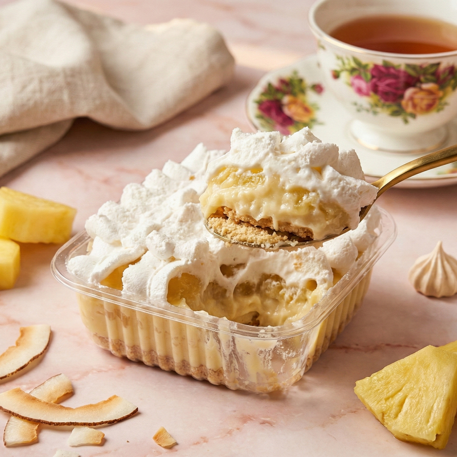 Uma explosão de texturas e sabores que vai te conquistar! Nossa criação especial combina uma base crocante de biscoito amanteigado com um brigadeiro de coco irresistivelmente cremoso, pedaços generosos de abacaxi caramelizado que derretem na boca, tudo finalizado com chantilly sedoso e uma chuva de coco granulado tostado. Cada colherada é uma experiência tropical única - o doce do abacaxi caramelizado casa perfeitamente com o cremoso do coco, enquanto o biscoito adiciona aquele crocante que você não resiste! Impossível comer só um!