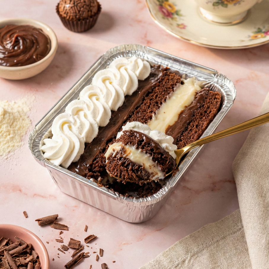 Dois sabores, um só sentimento: amor à primeira colherada. Massa de chocolate intensa feita com cacau 100% puro, recheada com uma dupla perfeita: nosso creme de Ninho super leve e um brigadeiro nobre cremosíssimo. Uma combinação clássica que derrete na boca e faz qualquer momento ficar mais doce e especial. Tamanho: 200ml, em média 150-200g.