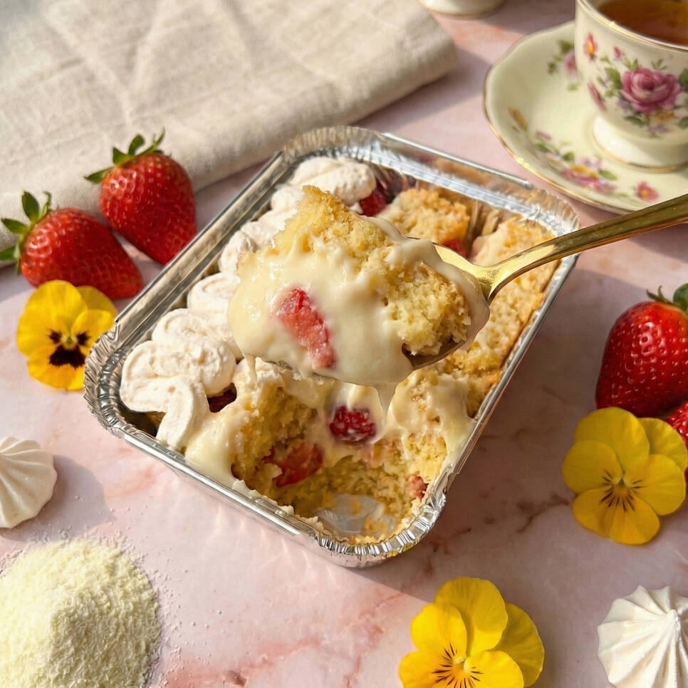 A base de massa de biscoito amanteigado envolve nosso creme de Ninho Original cremoso e aveludado, com pedaços suculentos de morangos frescos, trazendo aquele contraste perfeito entre o doce e o levemente ácido da fruta, uma generosa cobertura de chantilly sedoso coroa a criação, pontilhada com suspiros que se desfazem na boca.