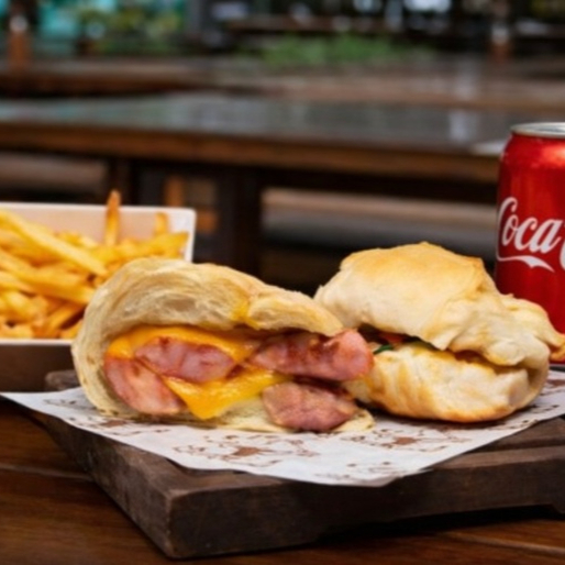 Sanduba de Choripan: Pão francês, linguiça suína, queijo cheddar, um toque de aioli e nosso Chimichurri.