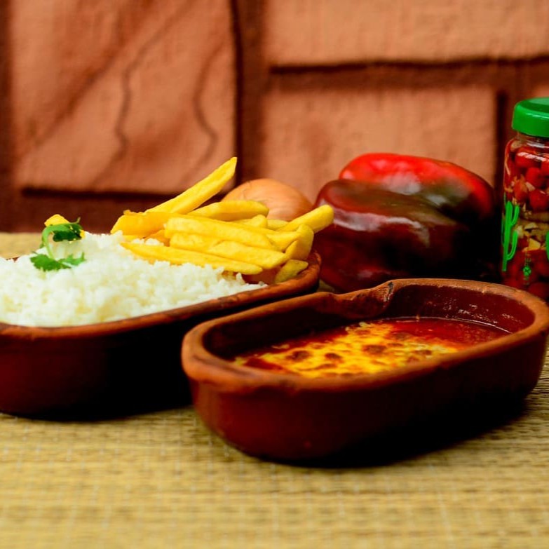 Deliciosa combinação de arroz, feijão de corda, calabresa em cubinhos, carne seca desfiada, puxado na manteiga, com fatias suculentas de picanha grelhada e queijo coalho assado, ah, acompanha fritas, huuum! (4 fatias de picanha)
