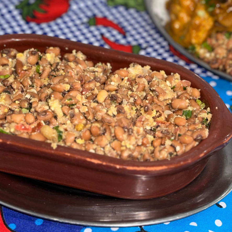 Porção generosa serve muito bem até 2 pessoas, feijão de corda, temperado com farofa, torresminho e coentro. Sem acompanhamento! (Não trocamos nem acrescentamos ingredientes)