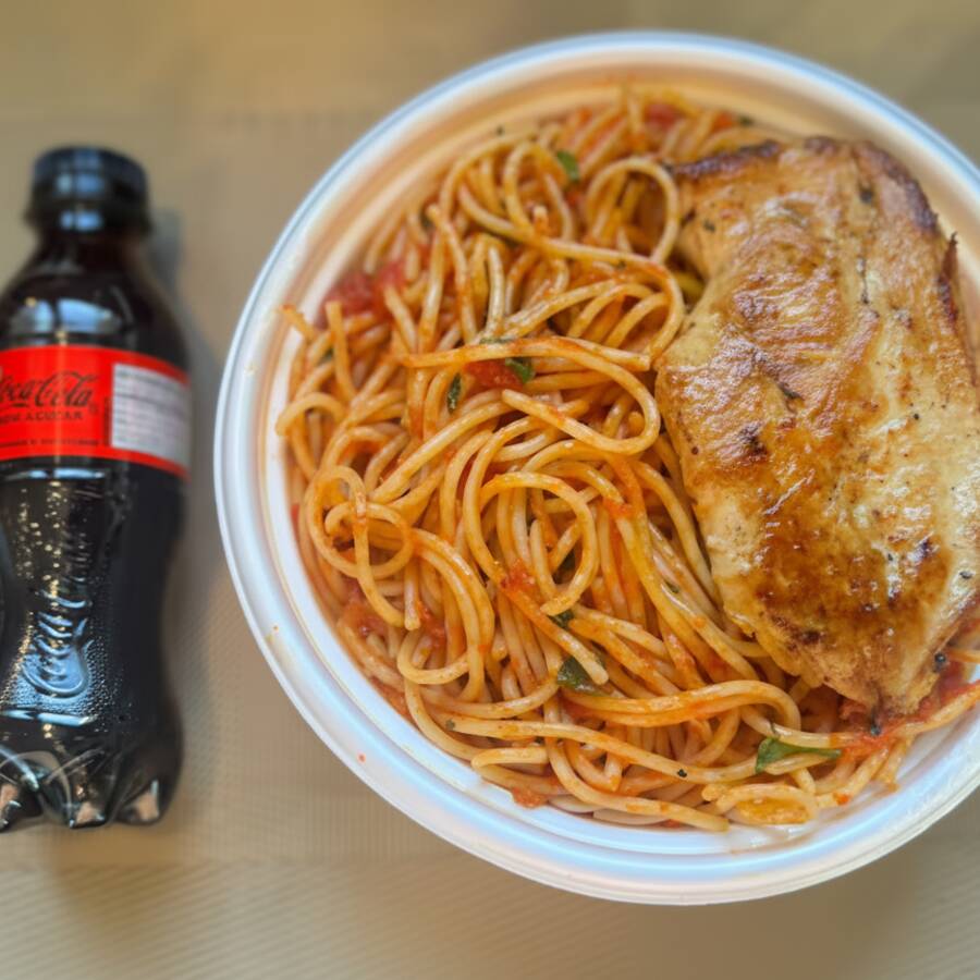 Espaguete & Frango Grelhado + Lata Coca Normal+$16.99 Leva Outra