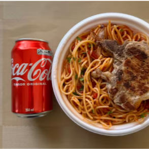 Espaguete&bistecasuína+cocazeropet+$16.99 Leva Outra