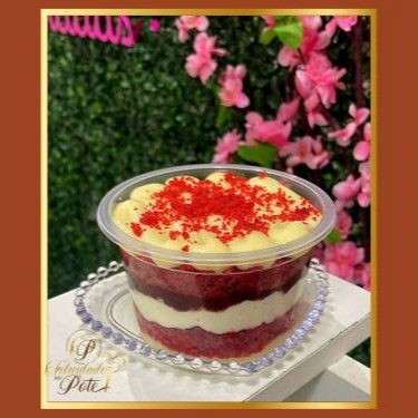 Bolo no Pote - Red Velvet com Cream Cheese (200ml) - E geleia de mroango – 350g Camadas úmidas de bolo Red Velvet, creme de leite Ninho, mousse suave de cream cheese e geleia de morango caseira o diferencia que todos procuram. Uma combinação leve, saborosa e equilibrada, perfeita para quem busca um doce especial e refinado. Todos os produtos são preparados conforme descrito, mantendo qualidade e padr