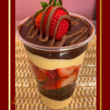 Copo da Felicidade - Sensação (250ml) - Uma explosão de sabores que vai conquistar você! Nosso Copo da Felicidade Sensação é feito com camadas de brownie macio, mousse de Danoninho cremoso, creme de chocolate delicioso, finalizado com mousse de chocolate, morango fresco, um crocante Stikadinho e raspas de chocolate. Uma sobremesa completa e irresistível, perfeita para quem ama morango com chocolate! Todos os produtos são preparados conforme descrito, mantendo qualidade e padronização. Agradecemos sua compreensão.