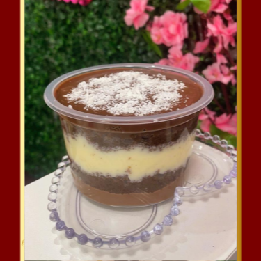 Bolo no Pote - Prestígio (200ml) –Inspirado no clássico sabor que todo mundo ama, o Bolo no Pote Prestígio combina bolo de chocolate molhadinho, creme de chocolate, brigadeiro de coco artesanal e uma generosa camada de ganache com raspas de coco. Uma sobremesa cremosa, equilibrada e irresistível.