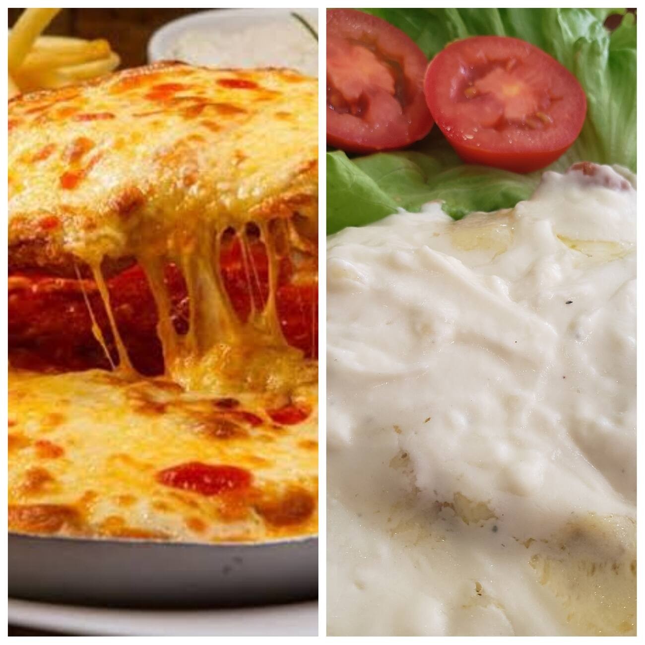 1 frango a parmegiana molho branco 1 frango a parmegiana molho vermelho