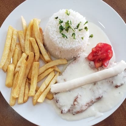 File De Peixe Com Creme De Milho (arroz E Fritas)