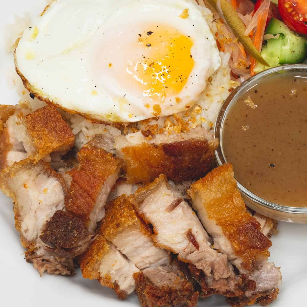 Feito com carne de porco, fígado de frango, temperado com calamansi, cebola e pimentas.