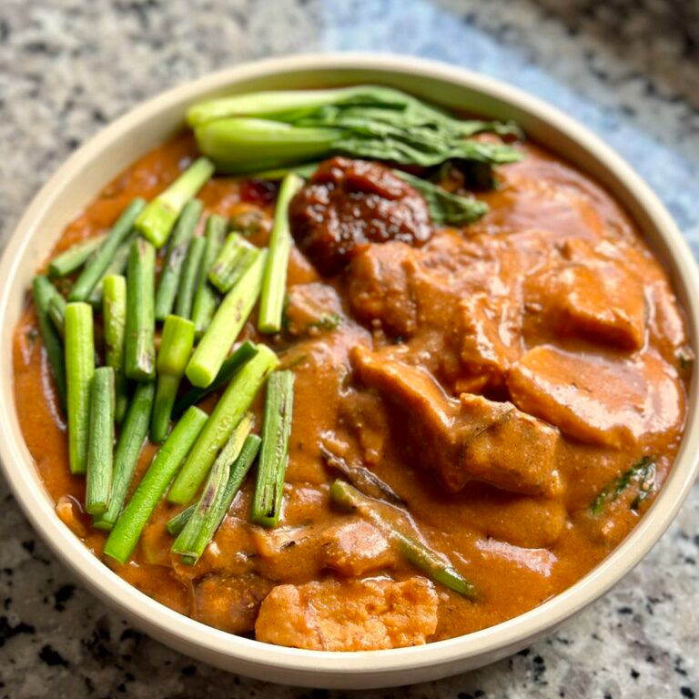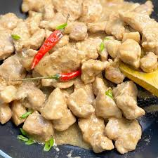 Ensopado levemente apimentado leite de coco com panceta. Cremoso, encorpado e levemente picante