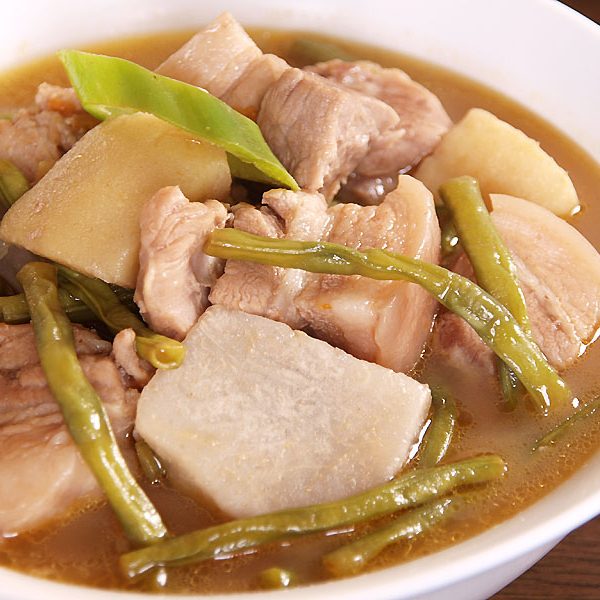 Ensopado levemente apimentado leite de coco com panceta. Cremoso, encorpado e levemente picante.