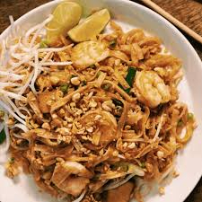 Macarrão de arroz frito com molho de tamarindo, amendoim e vegetais.