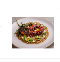 Alga nori, shari, polvo grelhado com olho agridoce a base de pimenta coreana