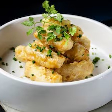 Couve flor caramelizada em molho agridoce levemente picante e finalizada com katsuobushi