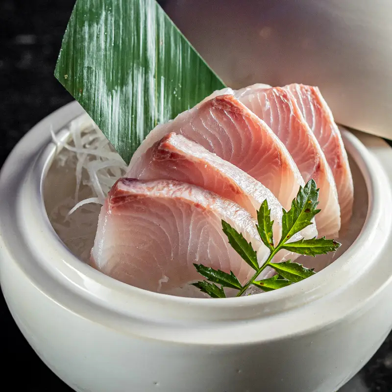 Finas fatias de pescado do dia, ponzu de tangerina e nabo ralado