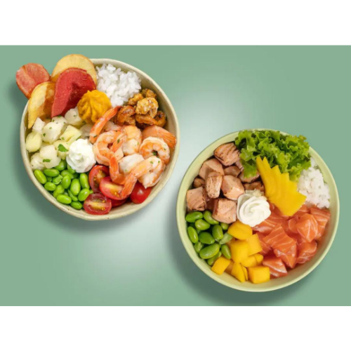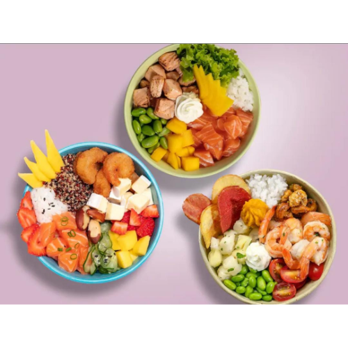 Um prato para quem gosta de comida saudável e fresquinha sem abrir mão do prazer. Opções de peixes crus, grelhados ou empanados Escolha seus ingredientes: salmão, atum, peixe branco, camarão, lula, frango, ovo de codorna, vegetais, frutas, acompanhamentos, arroz, quinoa, alface, chips e toppings deliciosos (*Atenção para base de alface o peso ficam nos pokes com uma gramatura um pouco menor*)