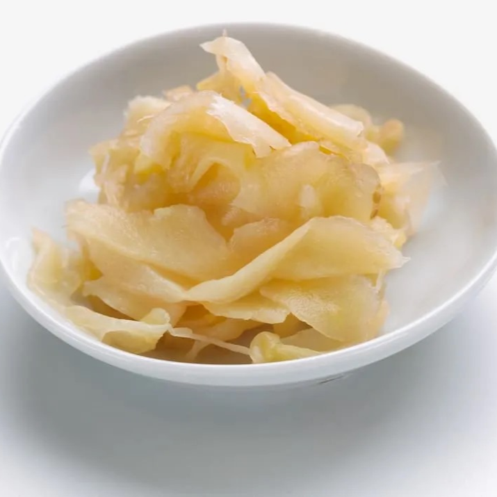 Fatias peixe branco, acompanha gengibre e wasabi. Porção 6 unidades.