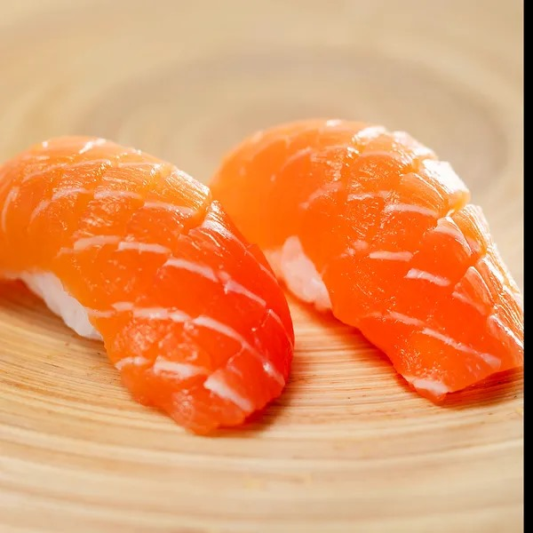 Arroz, salmão, nori, acompanha gengibre e wasabi. Porção 8 unidades
