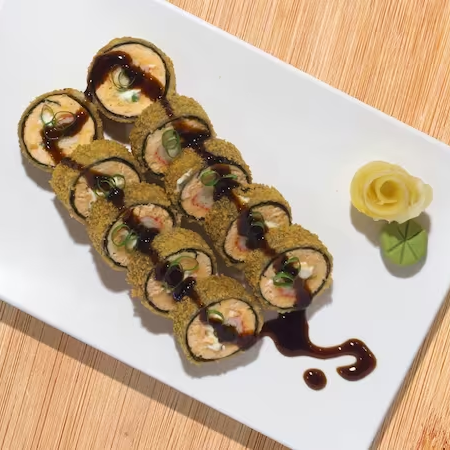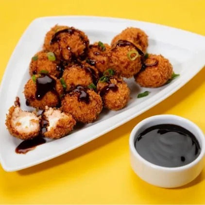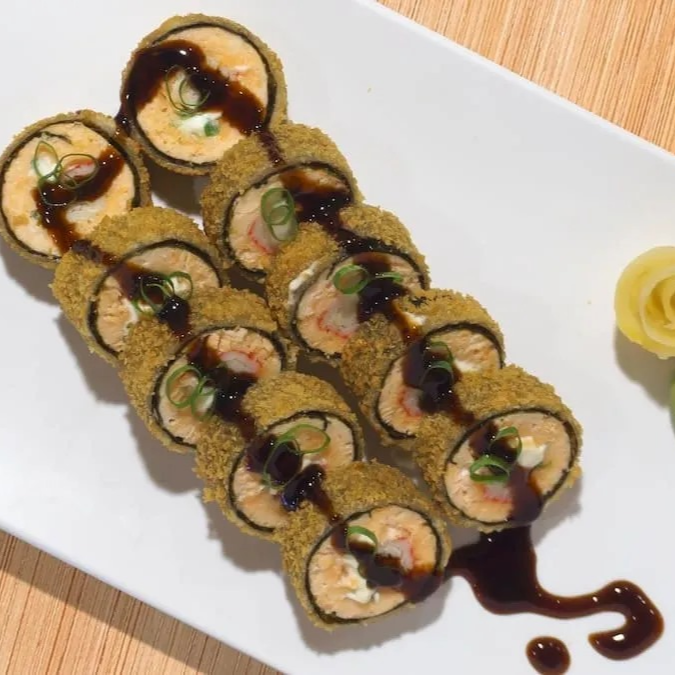 Deliciosa porção de bolinhas de salmão empanadas na farinha panko e recheadas com cream cheese e molho a sua escolha. Vai bem como acompanhamento de qualquer prato.