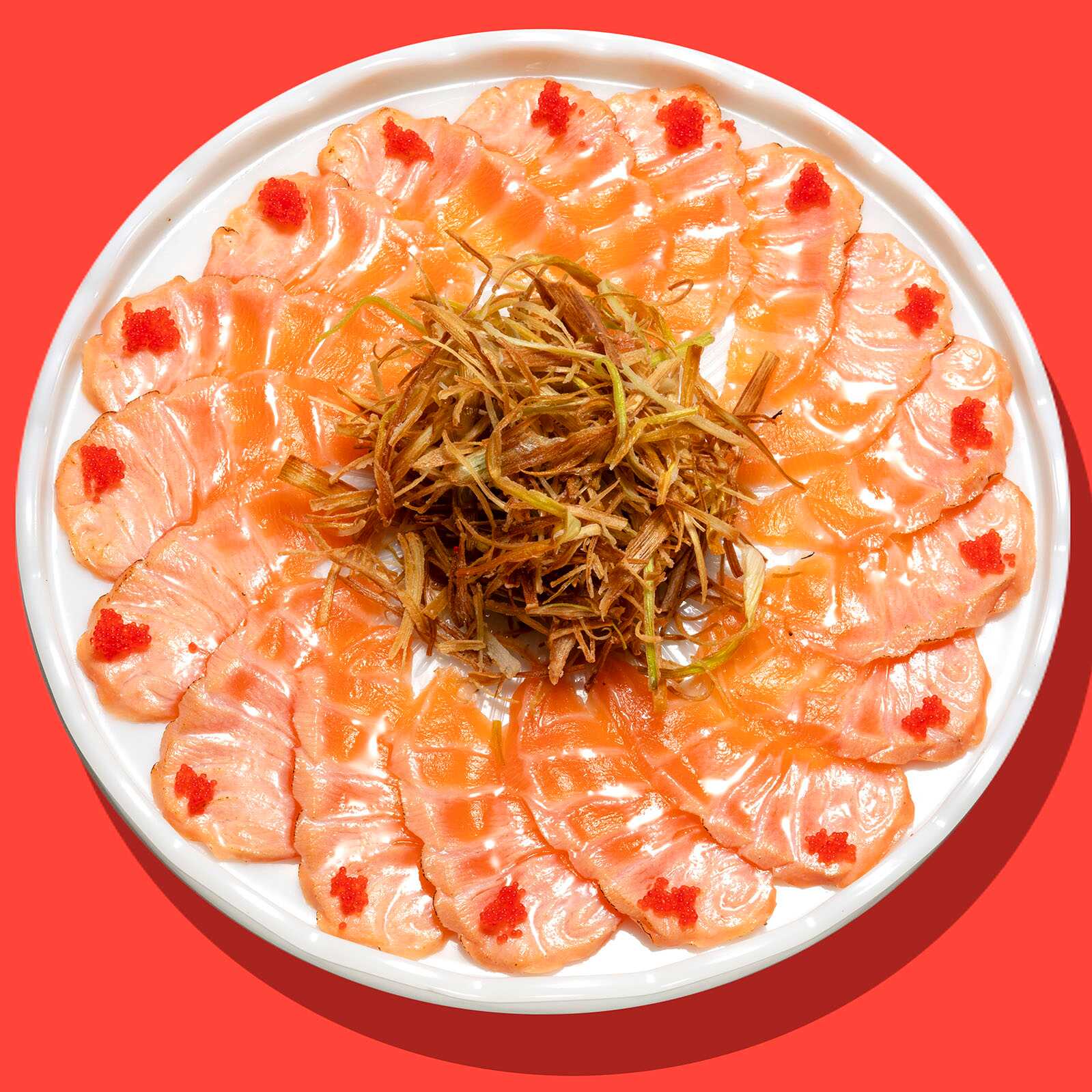 Porção de Carpaccio de Salmão com azeite trufado e ovas Tobiko (Novidade)