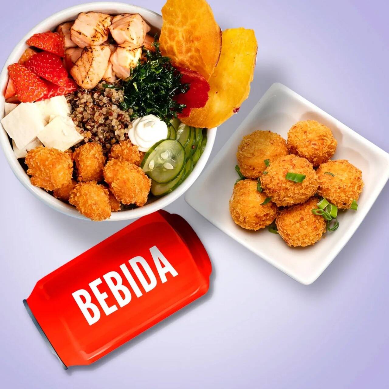 Um dos pokes mais pedidos pela variedade de sabores. Quinoa, atum, salmão, kani, pepino temperado, manga, abacate e chips de batata doce molho à sua escolha.