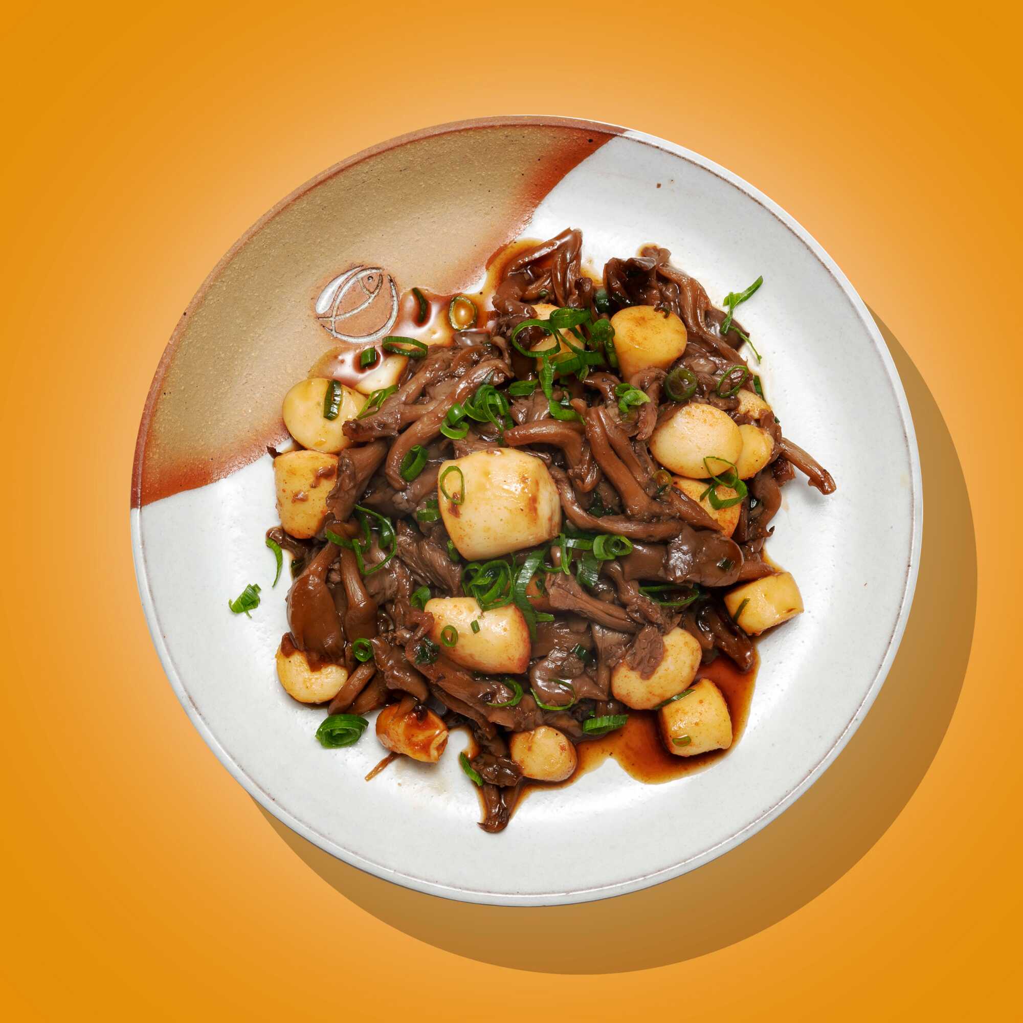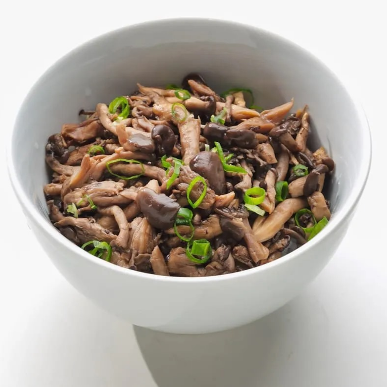 Shimeji e Tofu Acompanha arroz branco ou integral, abacate, tomate cereja, alface crespa, chips de batata doce.
