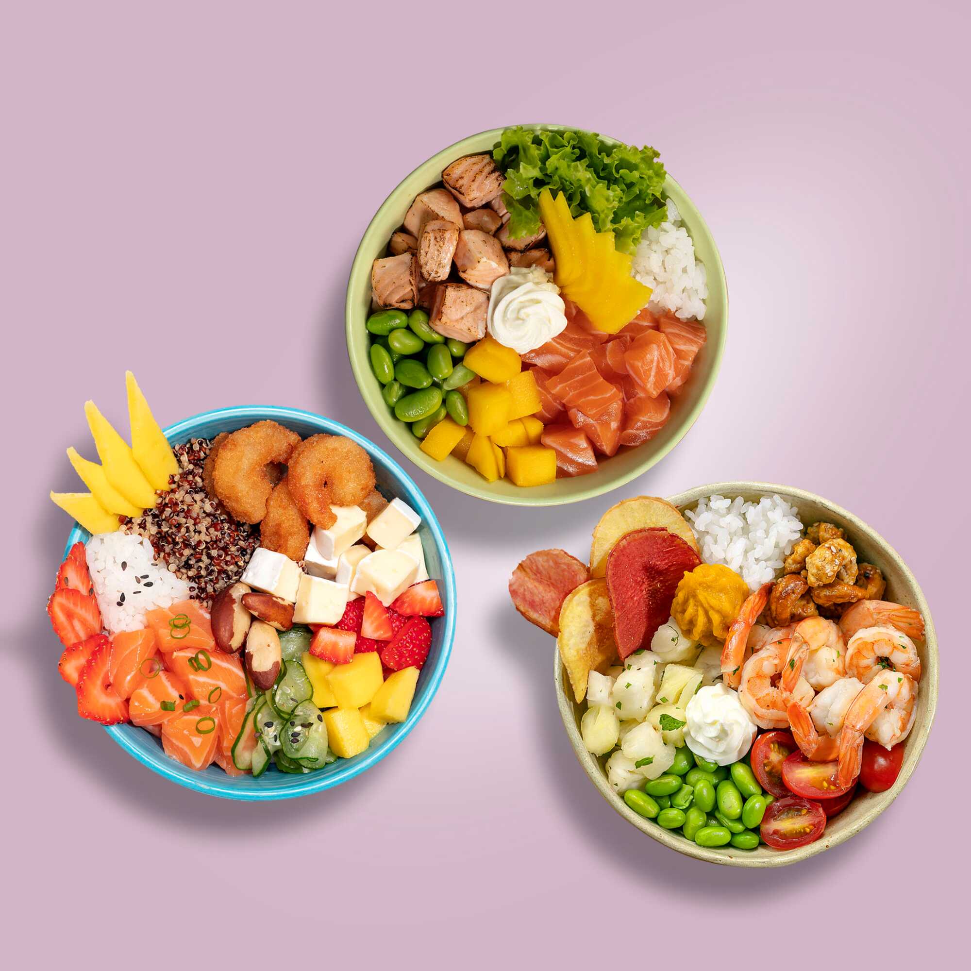 Um prato para quem gosta de comida saudável e fresquinha sem abrir mão do prazer. Opções de peixes crus, grelhados ou empanados Escolha seus ingredientes: salmão, atum, peixe branco, camarão, lula, frango, ovo de codorna, vegetais, frutas, acompanhamentos, arroz, quinoa, alface, chips e toppings deliciosos (*Atenção para base de alface o peso ficam nos pokes com uma gramatura um pouco menor*)