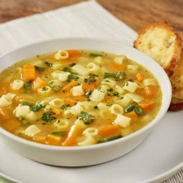 Acompanha fatias de pãozinho ou torrada. Descubra a combinação perfeita de legumes frescos e selecionados, cozidos lentamente para preservar seu sabor e nutrientes. O toque especial do macarrão sem glúten adiciona uma textura suave e leve, ideal para quem busca uma refeição saudável e reconfortante. Perfeito para dias mais frescos ou para quem deseja uma opção saborosa e sem glúten, sem abrir mão de uma experiência leve e nutritiva.