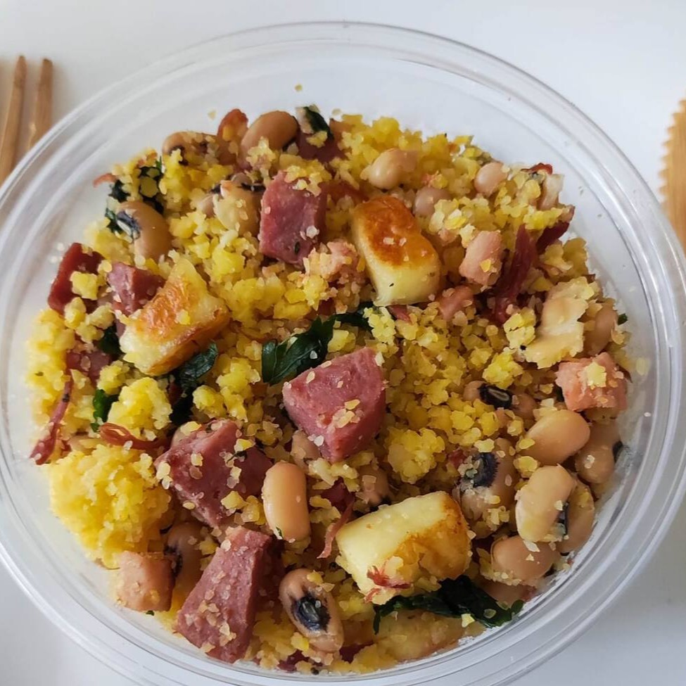 Bateu aquela fome? Se joga nesse cuscuz caprichado! Vem com carne seca desfiadinha, calabresa frita, bacon crocante, queijo coalho derretido e feijão fradinho bem temperado, sem conservantes. Tudo montado no pote, pronto pra matar a vontade de comer um cuscuz como o da casa da vó. É o gostinho da roça, pronto pra matar a saudade! Só vem!