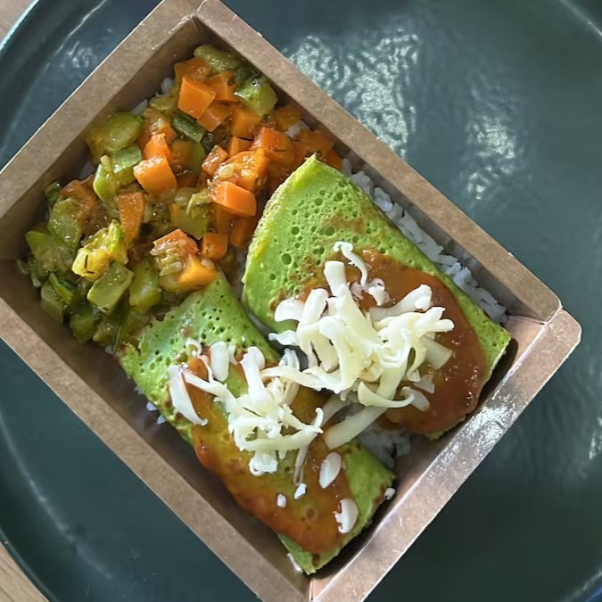 Panqueca De Carne Com Arroz E Legumes
