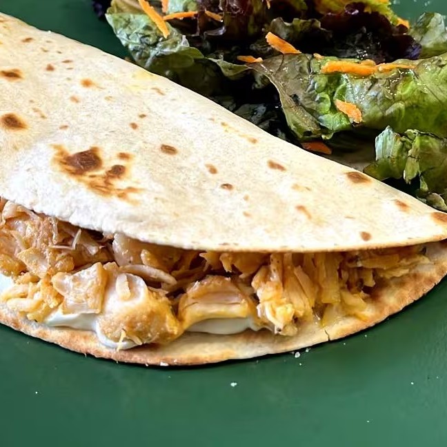 Wrap com frango desfiado e requeijão cremoso.