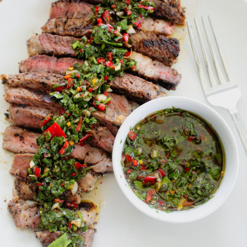 Arroz,feijao,farofa e Contra com delicioso Chimichurri
