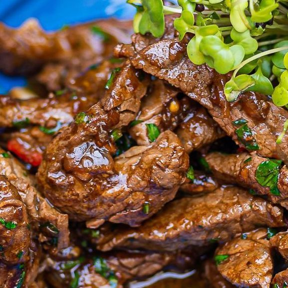 Macarrão com deliciosa Maminha preparada na brasa na manteiga