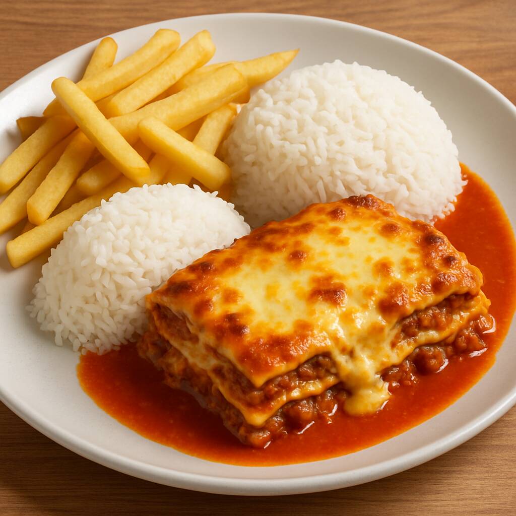 Lasanha Bolonhesa Presunto E Queijo E Fritas