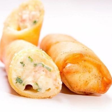Camarões selecionados combinados com queijo mussarela, envolvidos em uma massa fina e crocante. Uma combinação sofisticada e deliciosa, ideal para um aperitivo elegante e saboroso.