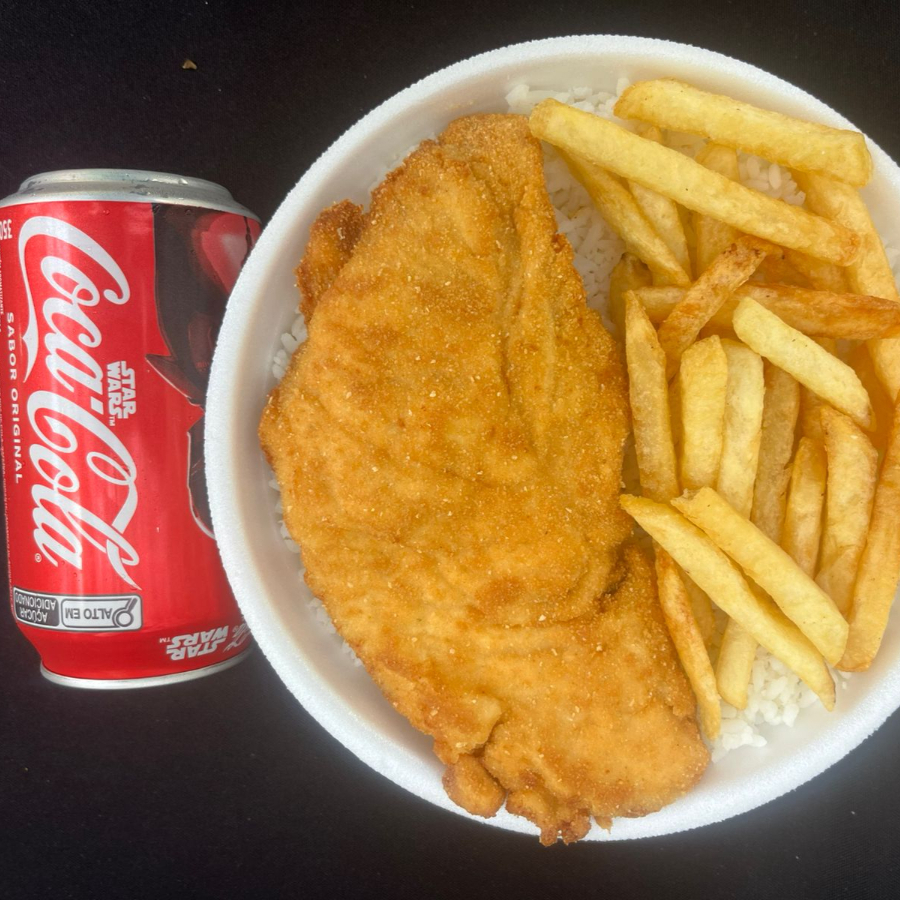File de Frango Amilanesa + Fritas + Arroze Feijao + Coca Cola 350 ML