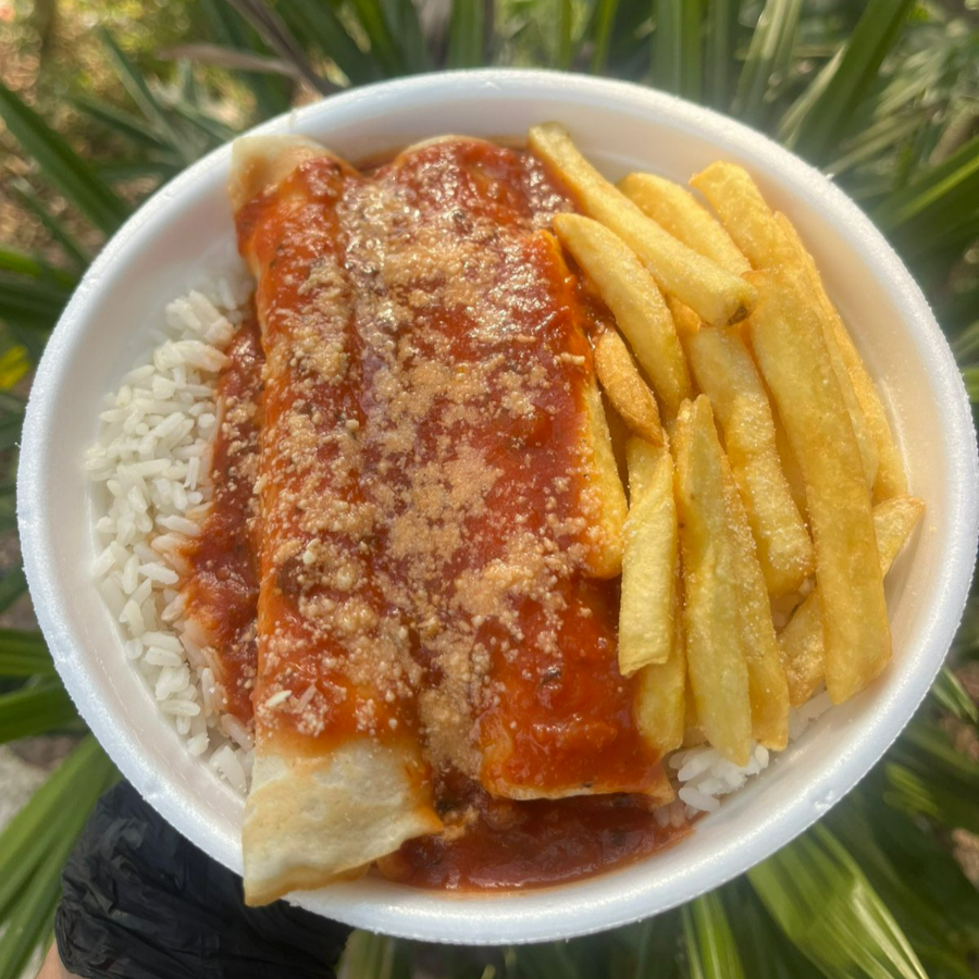 Parmegiana de Frango + Arroz + Feijao Juntos