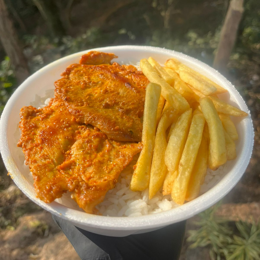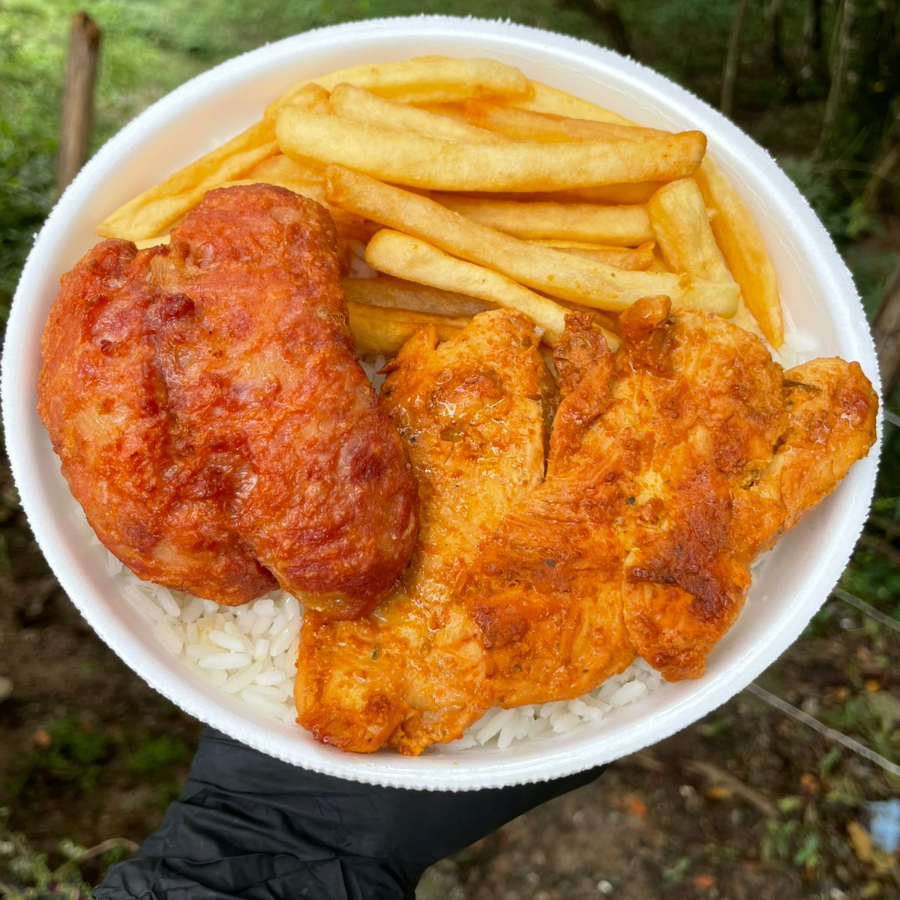 Mista File Frango / Linguiça + Arroz + Feijao + Fritas junto