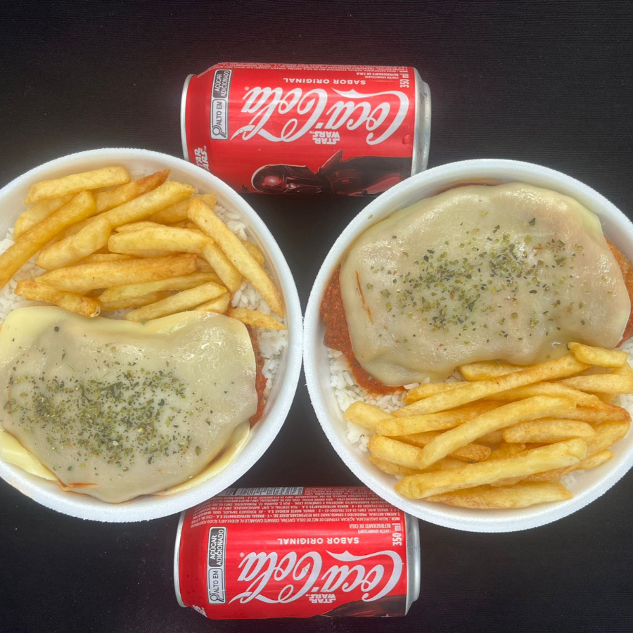 2 File de Frango aparmegiana + Fritas + Arroz e Feijao +2 Coca Cola 350 ML