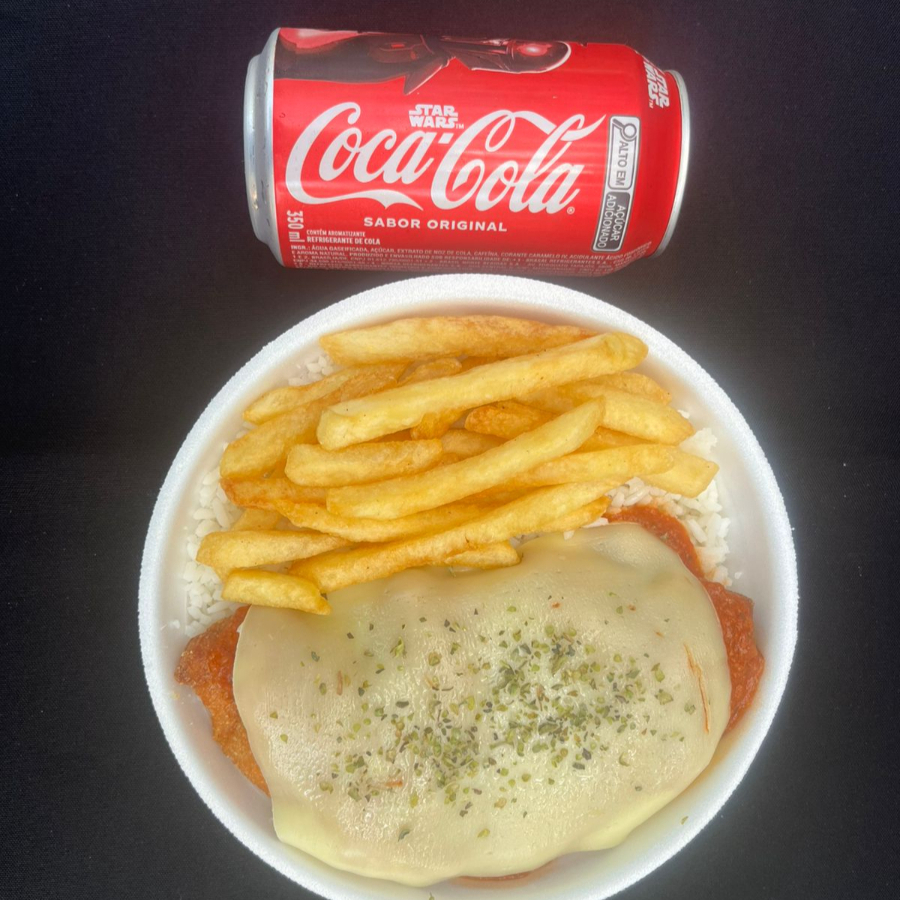 Frango Aparmegiana + Fritas + Arroze Feijao + Coca Cola 350 ML