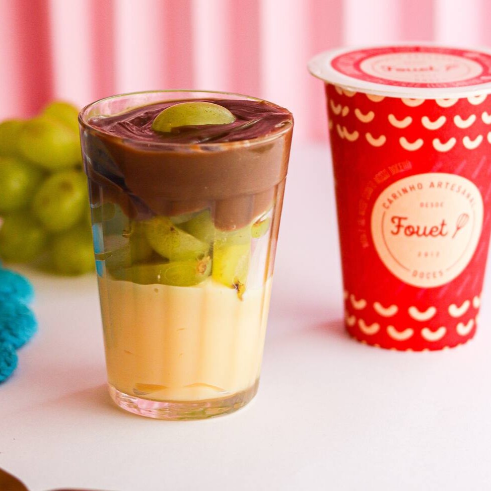 Brigadeiro ao Leite, intercalado com Uvas sem caroço selecionadas e brigadeiro branco cremoso.