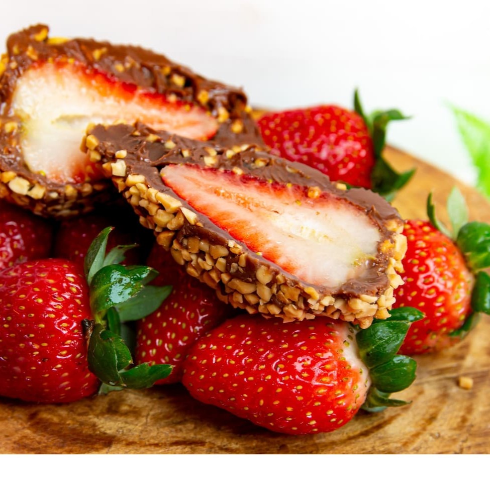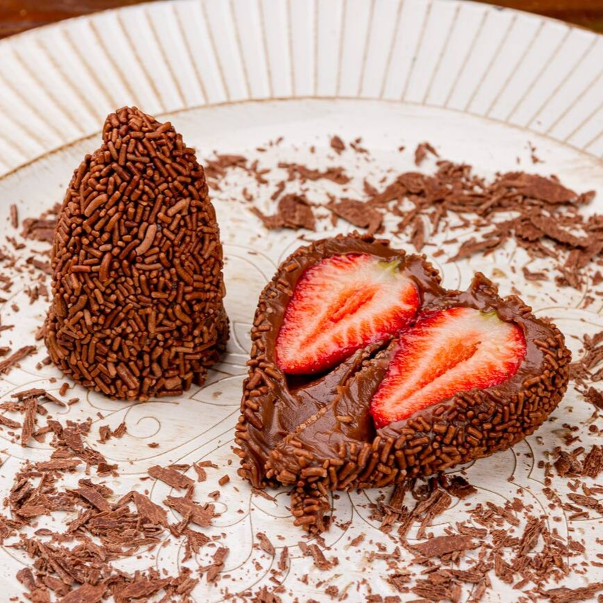 Morango envolvido em brigadeiro ao leite , xeren e Nutella