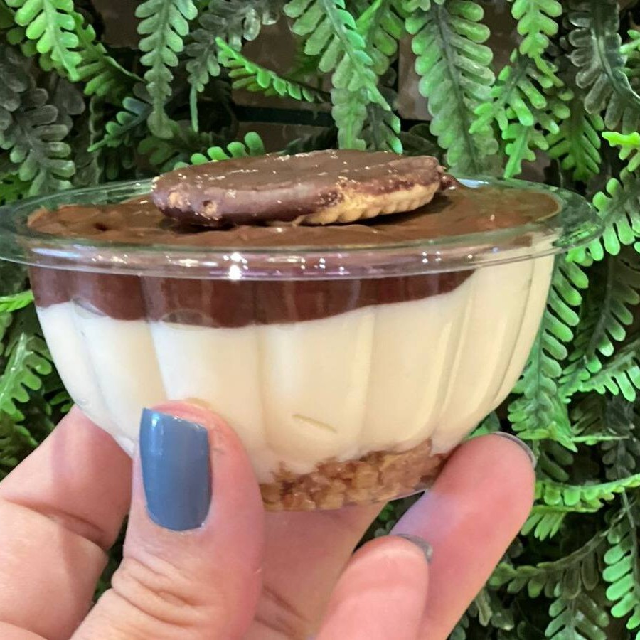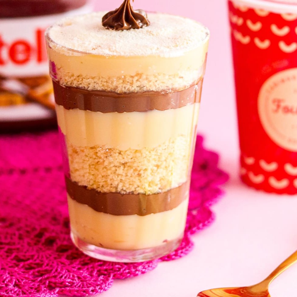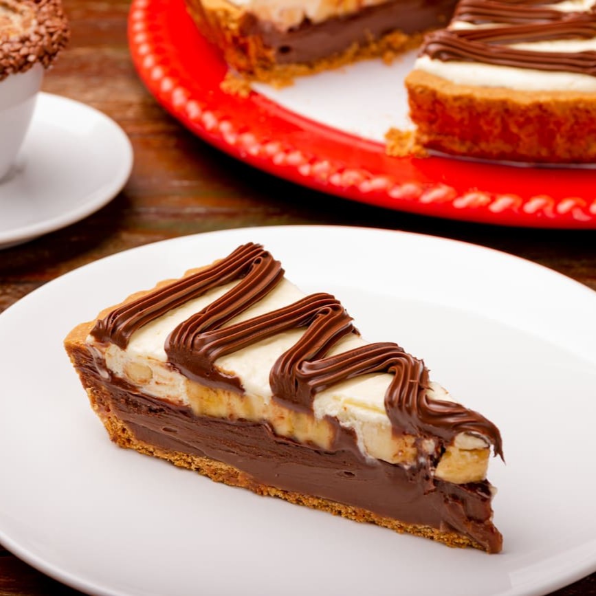 Massa crocante, recheio de Brigadeiro de Nutella, uma camada de Nutella pura e cremosa, bananas picadas, um creme delicioso a base de chantilly e Nutella por cima.