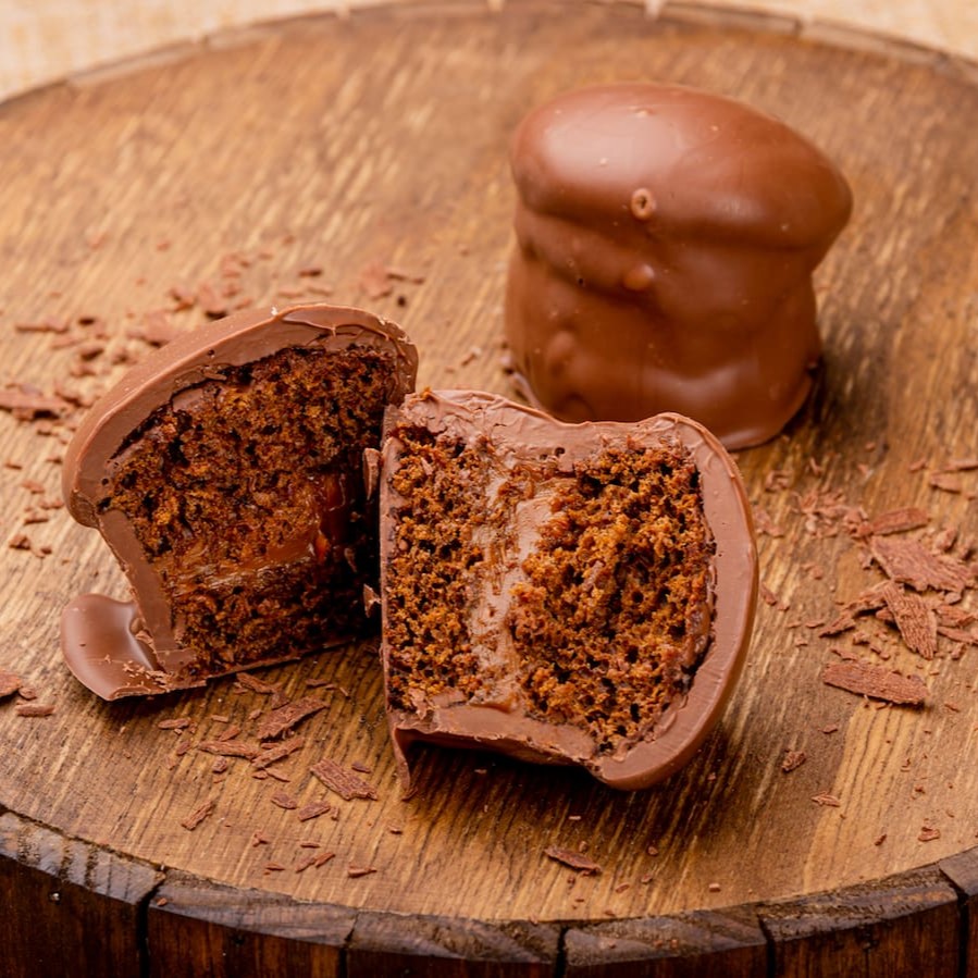 Pão de Mel da casa feito com produtos selecionados, recheado de doce de leite e banhado em chocolate ao leite.