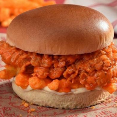 Pão de hamburguer macio, Deliciosa tira crocante do nosso frangão, maionese e cheddar cremoso.