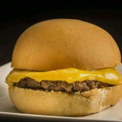 Um saboroso sanduíche composto com hambúrguer, maionese e mussarela tudo isso em um saboroso pão de hambúrguer.